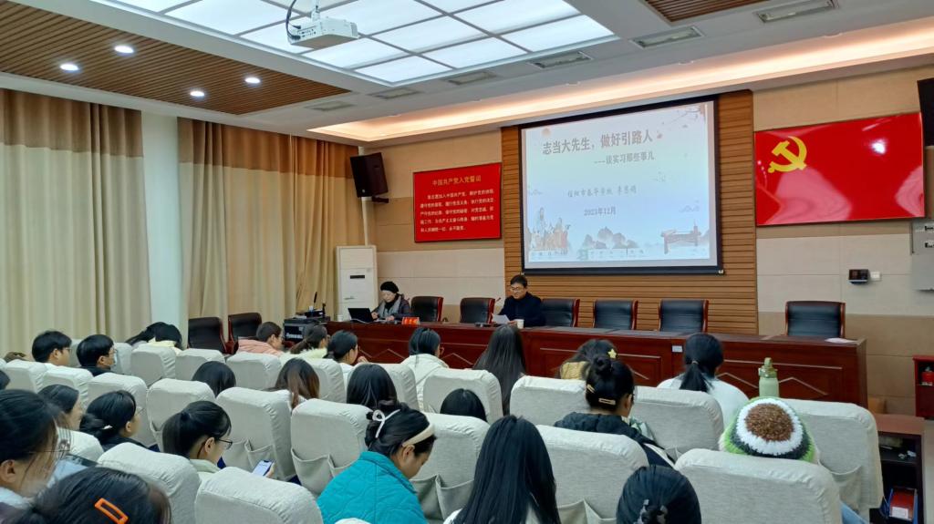 时间:2023-12-02 15:19:37 来源: 作者: 阅读: 次2023年12月2日上午,信阳市春华学校副董事长李秀娟应邀在教科301,为公司2021级本科生做了题为《志当大先生、做好引路人--谈实习那些事》的报告。教育学、教育技术学专业员工在现场聆听了报告,学前教育和心理学专业员工在线上聆听了报告。