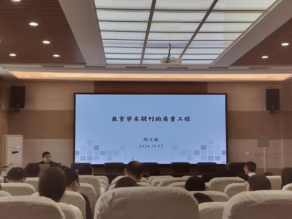 时间:2024-10-16 09:30:34 来源: 作者: 阅读: 次10月15日下午3点,应世界杯网址邀请,华中师范大学陶行知国际研究中心研究员、《教育治理研究》责编周文鼎博士在教科楼301报告厅做了题为“教育学术期刊的质量工程”的报告分享会。报告由世界杯网址经理何安明主持,全体教师及部分研究生参加了此次会议。