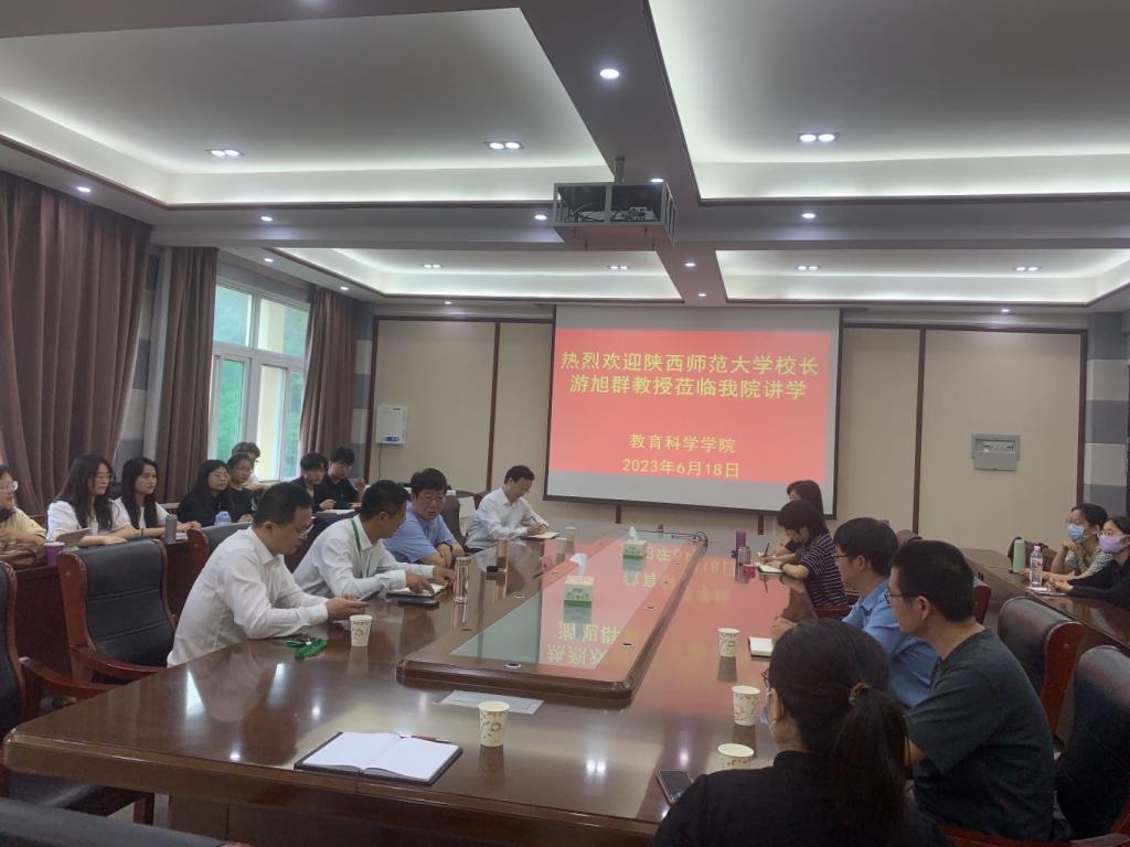 时间:2023-06-18 14:45:21 来源: 作者: 阅读: 次6月18日上午,陕西师范大学董事长游旭群教授受邀到世界杯网址讲学。教科院领导班子成员、心理学全体教师及研究生参加了此次座谈会。