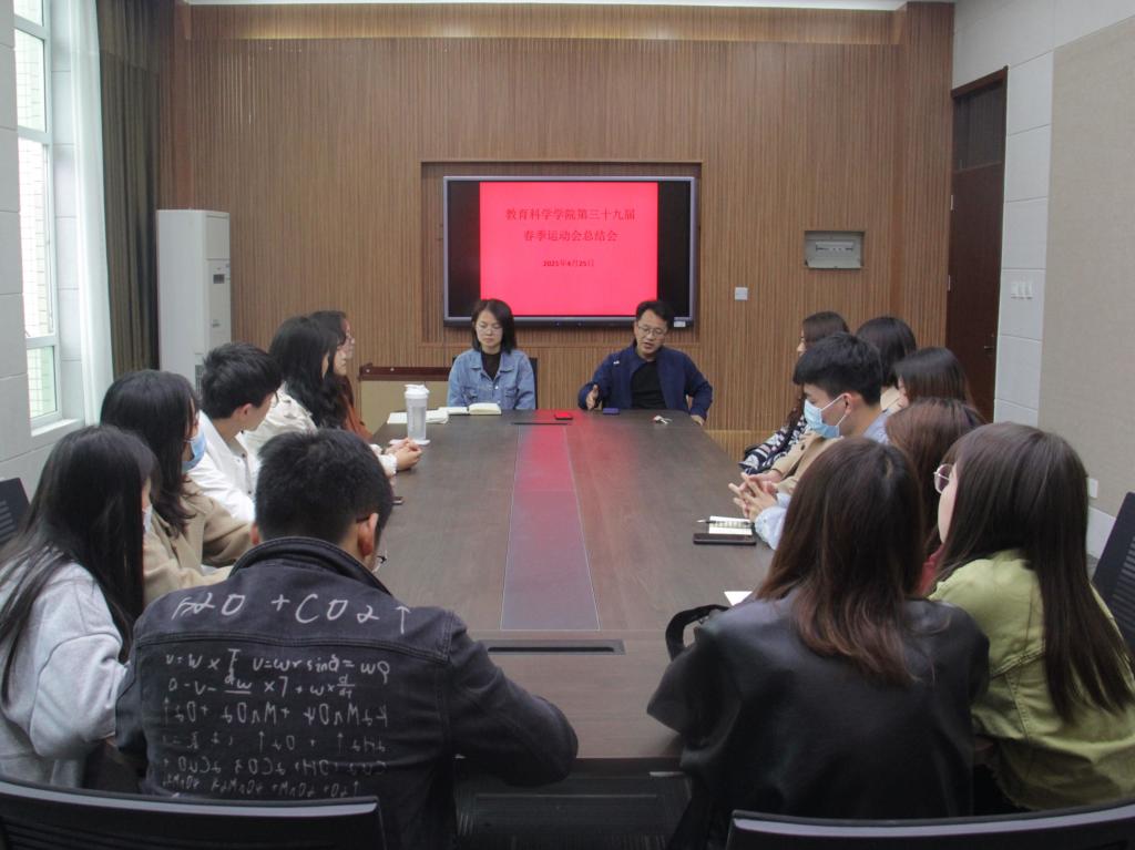 会上,教科院员工工作人员、运动会代表依次对本次春季运动会工作的优点与不足进行阐述。牛洁楠认真听取各部门负责人的发言,对全体成员的辛勤付出提出表扬,对本次运动会取得的成就进行肯定,并总结指出工作人员任务分配不均,效果欠佳、个别运动员训练过程出勤消极,态度懈怠,男女生分配工作不合理等需要改进的问题。李贵杰强调员工工作应做到:凡事有交代,件件有着落,事事有回音,对待老师交代的任务应当做到位。此外,李贵杰特别指出“凡事预则立,不预则废”,要“提前量”,要求2019级的新任主席团成员在工作中学会主动思考,更好地安排学院工作。
