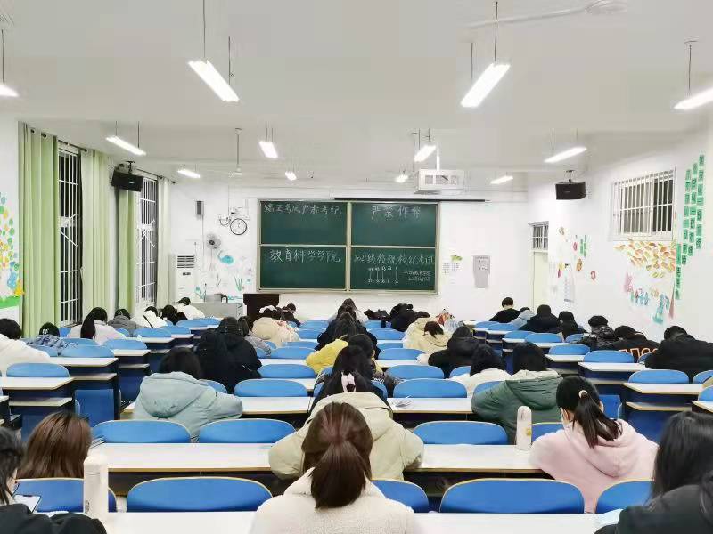 本次考试内容以《2021年员工工作规章制度专刊》为基础,通过填空、选择、简答、案例分析等题型考察同学们对学校管理规定、违纪处分、综合测评方法、住宿管理规定、宗教问题管理办法、学分制学籍管理办法等的学习了解情况,并设置教科楼201、202等教室为考场,采取实名制线上学习通闭卷形式开展。考试前期,各班根据学校相关要求提前组织同学们学习相关知识,积极备考;考试开始前30分钟,同学们佩戴好口罩陆续有序进场;考试过程中,同学们在规定时间内通过学习通APP进行线上作答,自觉遵守考场纪律,认真对待此次考试。每一位同学都仔细审题,认真答卷,力求取得更高分数,用自身实际行动践行校规校纪。整场考试衔接紧凑、秩序井然,所有工作人员尽职尽责,顺利完成了此次考试工作。