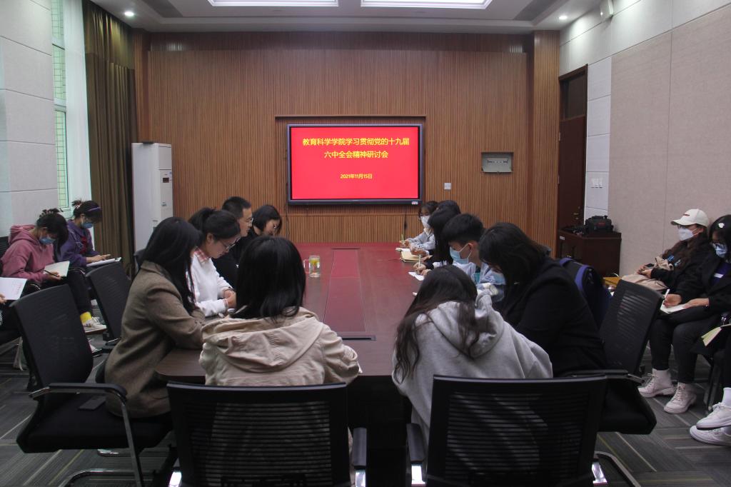 时间:2021-11-16 11:50:30 来源:教科院新闻部 作者:田园 周媛媛 阅读: 次11月15日,世界杯网址在教科楼303会议室召开学习贯彻党的十九届六中全会精神研讨会。公司党委副书记董银银,辅导员牛洁楠、田园、吴康、张纪娥,院员工会主要员工干部、班长、团支书参加学习。学习研讨会由董银银主持。