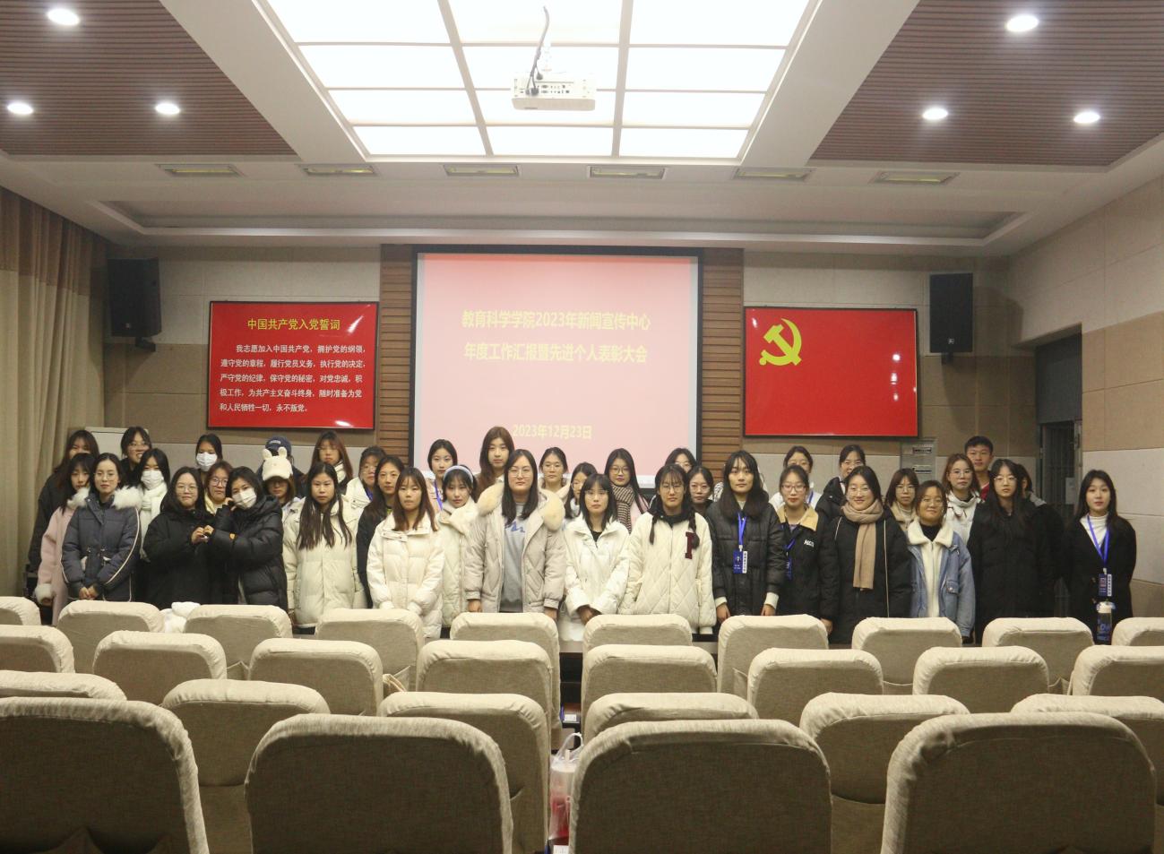 时间:2023-12-24 09:45:41 来源:教科院新闻宣传中心 作者:荆媛媛 祐亚菊 阅读: 次12月23日,世界杯网址2023年新闻宣传中心年度工作汇报暨先进个人表彰大会于教科楼301会议室召开,专职辅导员杨艺卓及新闻宣传中心全体成员出席会议。会议由新闻宣传中心主任朱亚彤主持。