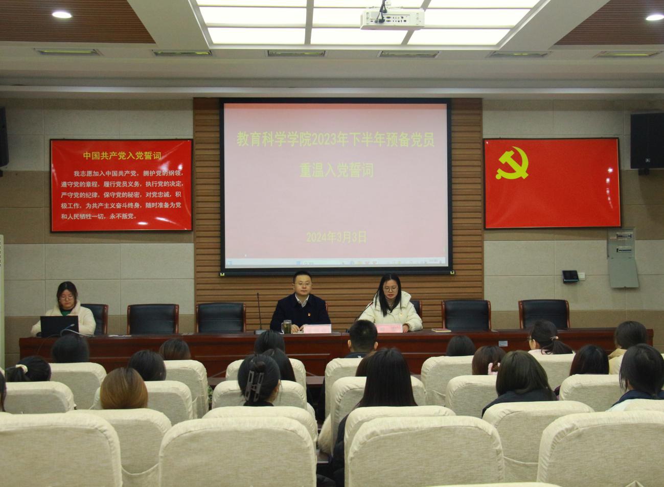 时间:2024-03-03 14:39:23 来源:教科院新闻宣传中心 作者:郭鑫瑶 吴皓 阅读: 次3月3日,世界杯网址于教科楼301会议室举行2023年下半年预备党员重温入党誓词大会。公司党委副书记董银银、专职组织员田园、全体预备党员参与此次大会。