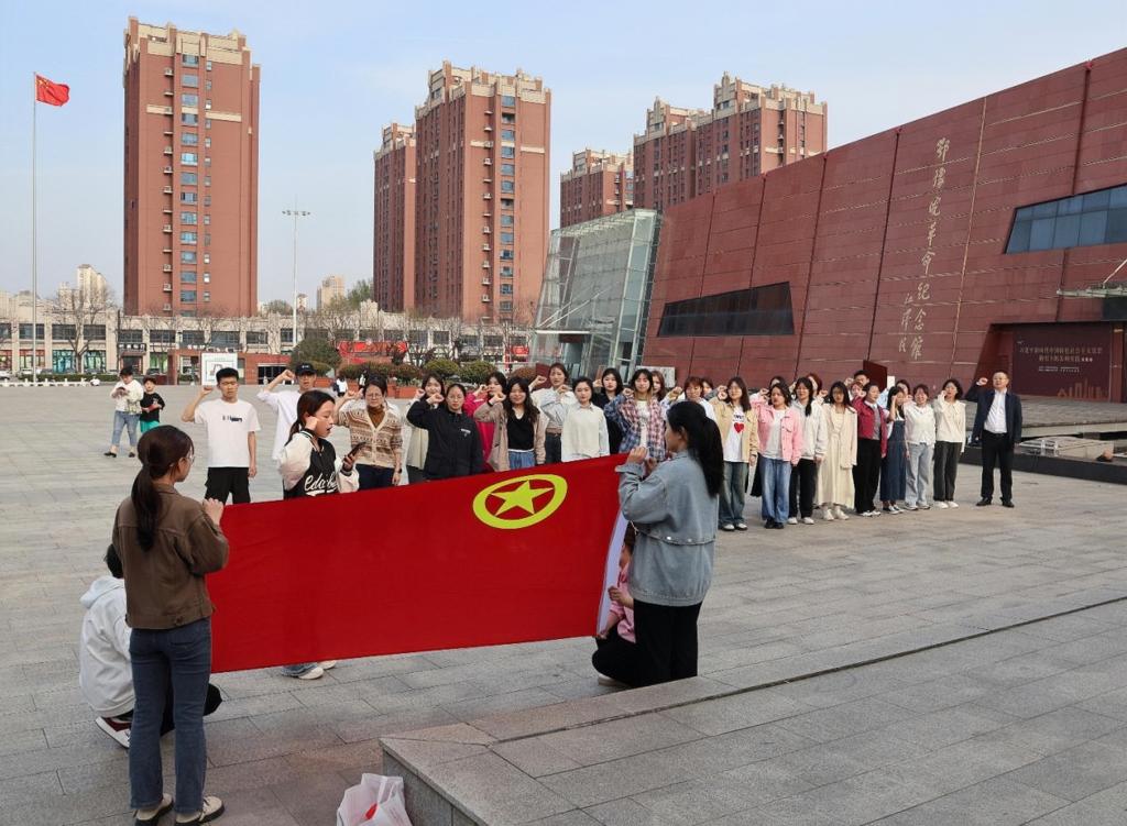 参观开始前,同学们以小组为单位到达纪念馆门口并且在途中自行讨论了关于革命历史的背景知识。紧接着,同学们携带团旗、院旗前往纪念馆举行宣誓活动。展馆内,师生党员面对鲜红的中国共青团团旗,高举右拳庄严宣誓,重温入团誓词。宣誓结束后,大家参观了革命纪念馆和“不忘初心、牢记使命”等主题教育展馆。讲解员带领大家沿着展览路线逐个展区参观。在展览过程中,讲解员讲述了吴焕先、许世友等革命先烈的故事以及上千幅图片和数百件革命实物,同学们认真参与并进行了积极提问。展览结束后,各组进行了小组讨论,回顾并分享了小组同学们的观察和理解。提出了一些问题并讨论。