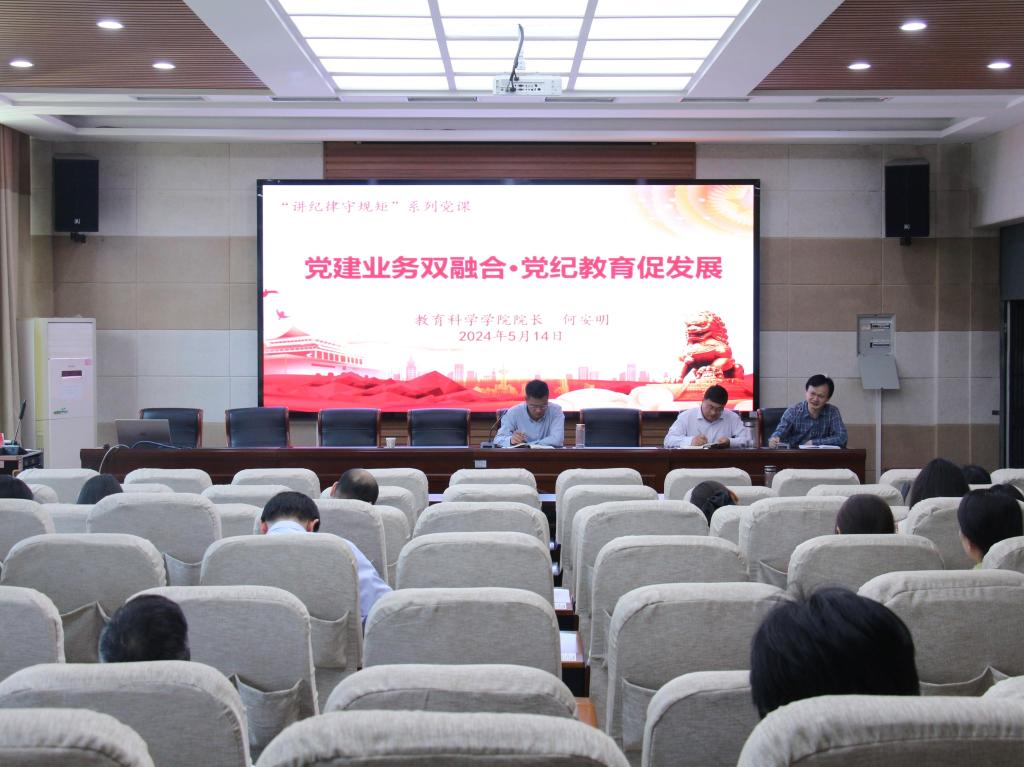 世界杯网址经理何安明以《党建业务双融合·党纪教育促发展》为题,讲授专题党课。他提出,党的纪律建设是确保党的事业长久发展的根本保证,要将党建贯穿于学科专业发展与团队队伍发展,应注重将党纪学习教育与师德师风建设有机结合起来,以党的科学理论武装青年,努力为师生创造良好的科研氛围和发展条件,引导青年加强科学研究,确保教学不落后,实现教学与科研双向促进。