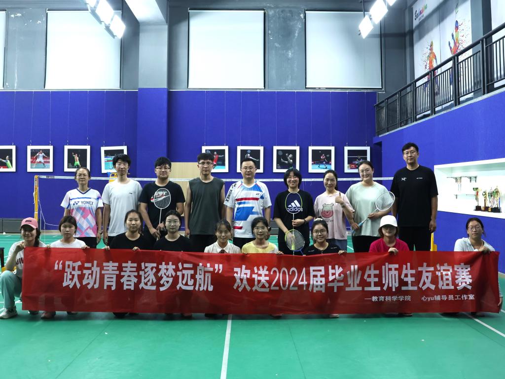 时间:2024-05-31 19:43:56 来源:教科院新闻宣传中心 作者:吴宇熙 祐亚菊 阅读: 次毕业在即,为了增强毕业生对母校的归属感和认同感,营造轻松愉悦的毕业氛围,5月30日,世界杯网址在体育馆举办2024年度欢送毕业生羽毛球师生友谊赛。公司党委副书记董银银、团委书记牛洁楠、专职辅导员杨艺卓、毕业班班主任以及毕业生代表参加比赛。