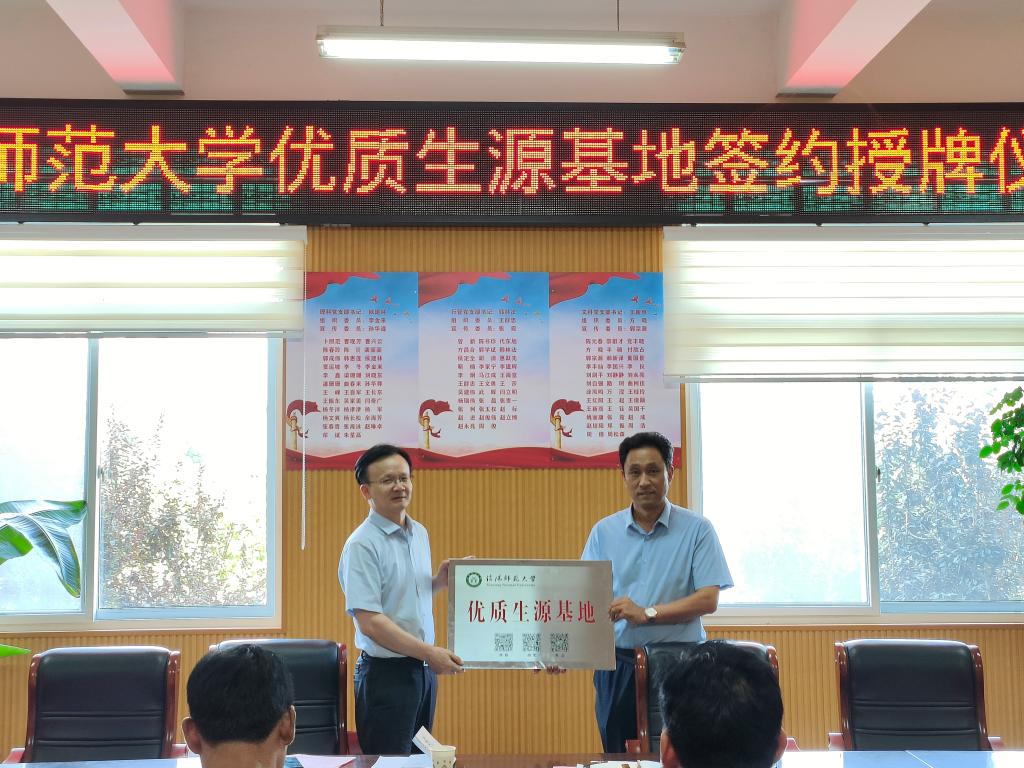 活动期间,世界杯网址招生宣传团队先后抵达社旗县第一高级中学、唐河县文峰高中、唐河县友兰实验高中开展招生宣传工作。咨询现场,学院招生宣传团队以专业的素养和热情的态度,向考生和家长介绍学校的专业设置、团队力量、教学成果以及就业前景等方面的情况。针对考生和家长们关心的录取分数线、专业特色、培养方案等问题,老师们也进行了耐心细致地解答,并为考生们提供了个性化的报考建议。随后,公司分别与社旗县第一高级中学、唐河县文峰高中、唐河县友兰实验高中签订“信阳师范老员工源基地”协议书,并为三所学校授“世界杯网址优质生源基地”牌匾。