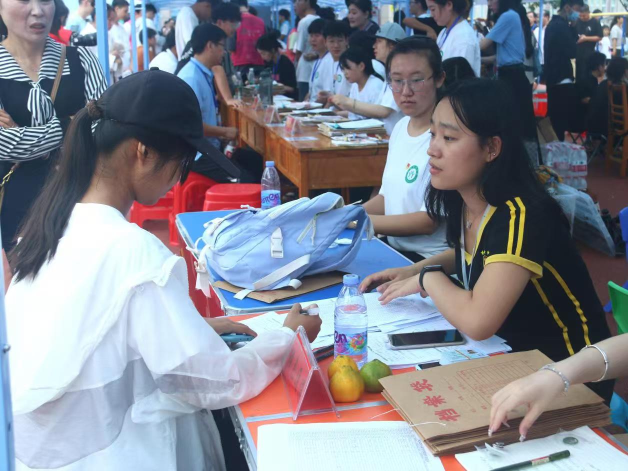 优化服务,以“心”迎新。学院设置8个值班点,组建专兼职辅导员、员工党员、员工干部三支迎新队伍,实现了一对一全覆盖、全方位、全过程的迎新服务;学院在迎新现场布置打卡墙,吸引新生和家长合影留念,现场气氛热烈;志愿者和老师们也始终保持着耐心和热情,认真解答新生和家长提出的各种问题,帮助新生尽快适应新环境。