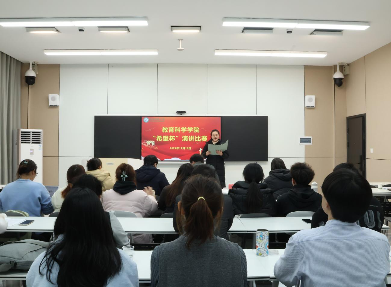 经过激烈的角逐,评委们根据选手的演讲内容、语言表达、仪态举止等多方面进行了综合评分,拟推荐王海洋、乔严、李芮、柳丽娜四位同学参与校级评选。