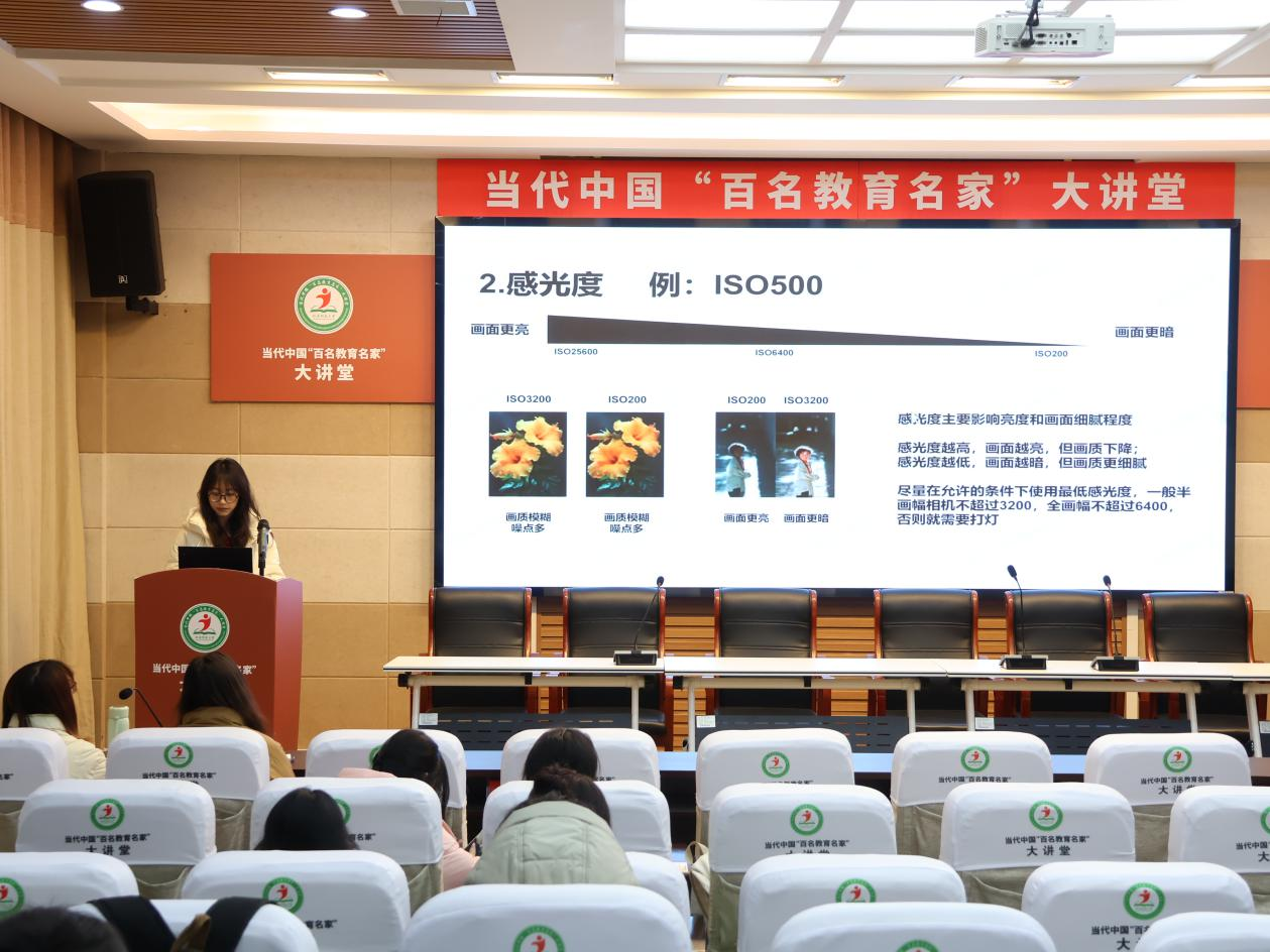 摄影部部长曹君琪围绕“摄影技巧与校园瞬间捕捉”展开分享。她通过展示一系列优秀摄影作品,讲解构图、光线运用以及拍摄角度等技巧,并鼓励学员们在日常生活中多观察、多实践,用镜头记录校园的美好瞬间。