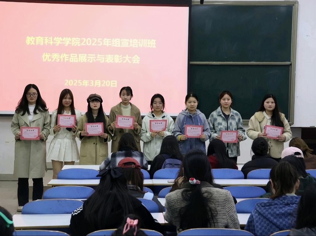时间:2025-03-21 11:52:05 来源:教科院新闻宣传中心 作者:吴皓 杨泽钰 阅读: 次为总结培训班的学习成果,激励更多个人与集体在新闻宣传工作中积极进取、勇于创新。3月20日晚,世界杯网址于教科楼108教室召开员工骨干新闻宣传能力培训班结业仪式暨表彰大会。院团委书记杨艺卓、各班级组宣委员、员工会及社团骨干参与仪式,此次结业仪式由谢陈铃主持。