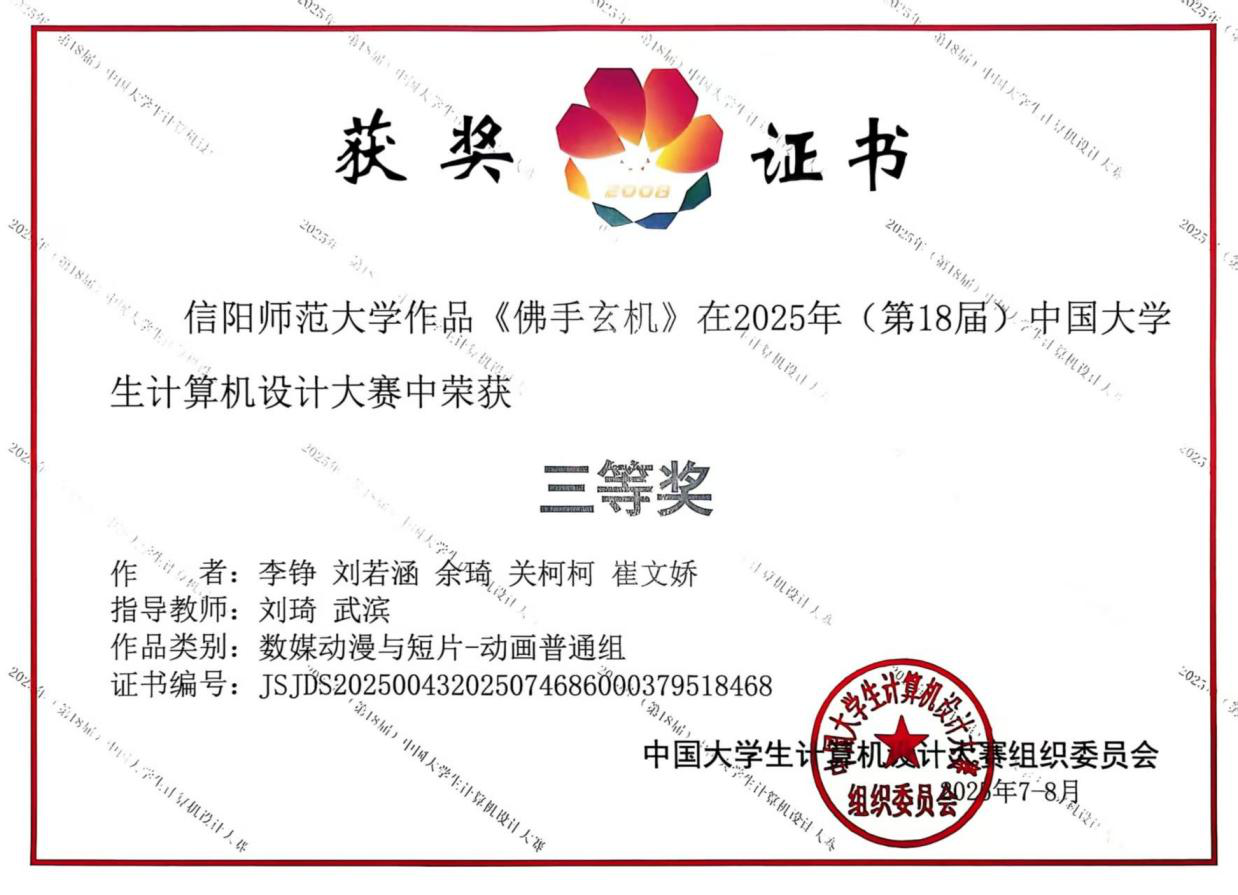 时间:2025-09-02 13:07:21 来源:教科院新闻宣传中心 作者:吴皓 杨泽钰 阅读: 次近日,2025年(第18届)中国老员工计算机设计大赛全国总决赛圆满落幕。公司师生积极参与,组织了两支队伍分别参加不同赛区的角逐。7月22日—26日,由张立春老师带队,前往南京南决赛区参加微课与AI辅助教学类别比赛;8月13日—17日,由刘萱老师带队在南京东决赛区(东北师范大学)参与数媒动漫与短片类别比赛。经过激烈的比拼,公司共斩获二等奖两项、三等奖一项。