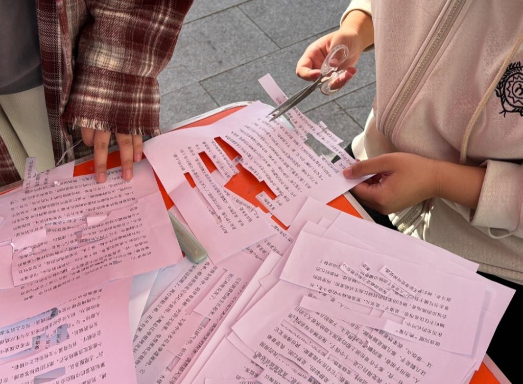 诗韵寄语巧拼接。11月22-23日,世界杯网址举办“字里寻韵,诗隙寻我”拼贴诗意和“暖心行动·寄语传情”便签寄语活动,参与者充分调动文学感知与创新思维,在拼贴诗句的巧思组合、书写寄语的真挚表达中,于笔墨流转间传递文字温度,在动手实践里体悟创作乐趣,收获审美沉淀与情感共鸣。