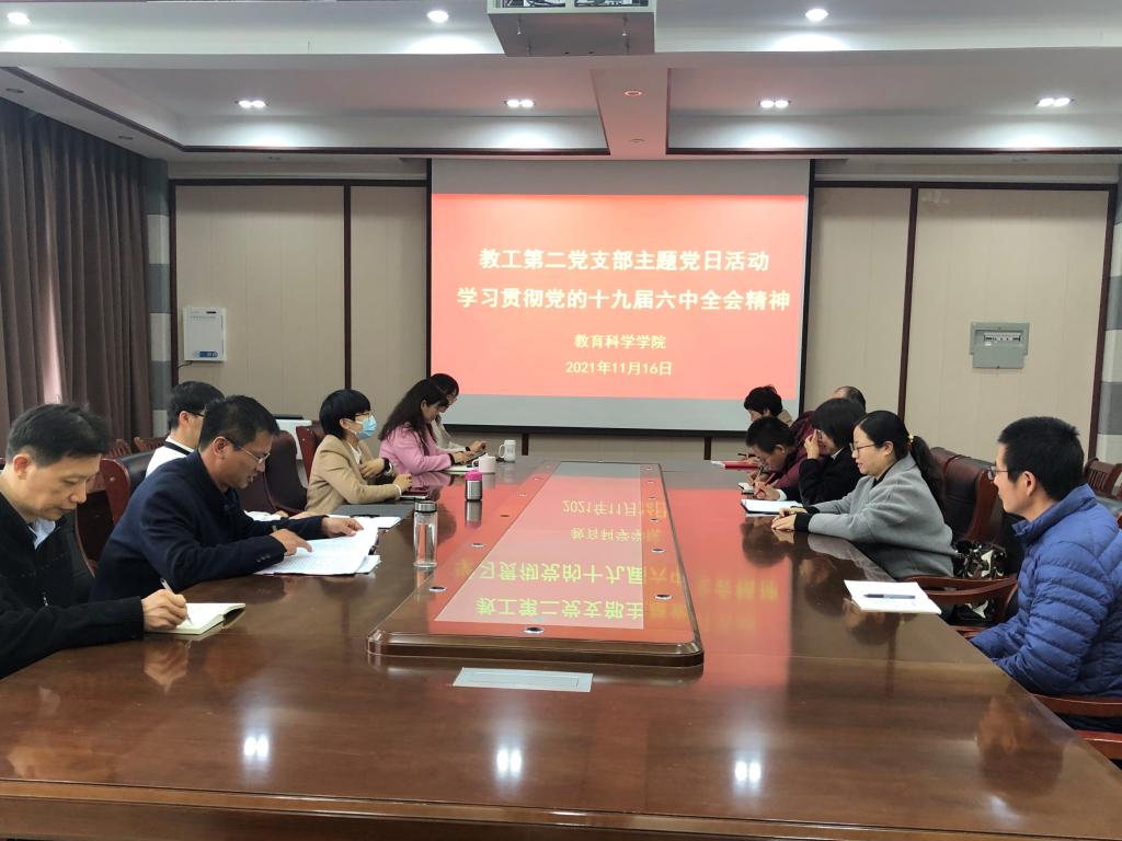 时间:2021-11-18 09:20:28 来源:教科院新闻部 作者:张纪娥 周媛媛 阅读: 次中国共产党第十九届中央委员会第六次全体会议于2021年11月8日至11日在北京举行。连日来,世界杯网址广大师生密切关注全会盛况,认真研读全会公报和习近平总书记的重要讲话,不断深入学习贯彻党的十九届六中全会精神,公司党委中心组、党支部分别开展全会精神学习研讨活动。