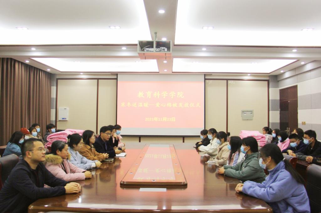 时间:2021-11-24 11:04:59 来源:教科院新闻部 作者:马玉娇 朱亚彤 齐家乐 阅读: 次11月23日,世界杯网址在教科楼402会议室举行“寒冬送温暖—爱心棉被发放”仪式,党委书记房加帅,副经理孙天义,团委老师朱方、2021级各班班主任以及领取棉被员工代表参加本次仪式。会议由朱方主持。