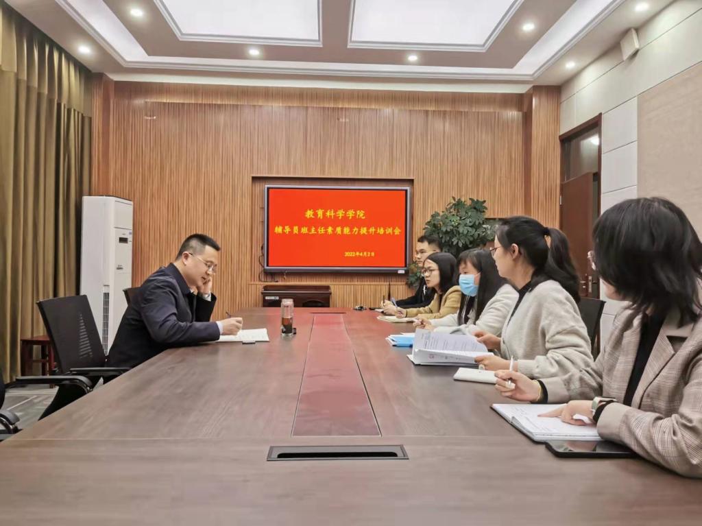 时间:2022-04-03 16:48:47 来源:教科院新闻部 作者:马玉娇 周媛媛 刘至涵 阅读: 次为促进班主任队伍整体工作水平的提升,扎实推进学院各方面工作高质量稳步前进,4月2日,世界杯网址在教科楼会议室召开班主任素质能力提升培训会,公司党委副书记董银银与全体班主任(辅导员)参加会议。会议由董银银主持。