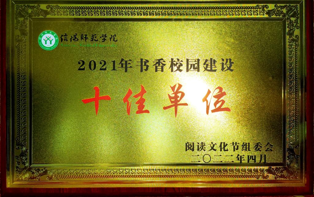 公司一直以来十分重视员工的阅读建设工作,多次组织各班级开展读书分享会、读书打卡活动。正值世界读书日,为号召广大师生养成良好的读书习惯,发挥示范引领作用,公司员工会于4月21日组织开展线上读书分享活动,为员工提供一个交流思想、展示自我的平台。学院广泛动员同学们参加图书馆举办的如“21天,我的阅读存折”云打卡、“令人心动的Bookstore”设计大赛、“2021年中南七省区学术搜索挑战赛”等各种读书活动,全体同学热烈响应号召,积极参加,并取得了优异的成绩。在全体师生的共同努力下,公司荣获2021年书香校园建设十佳单位称号,2019级丁思洁同学荣获信阳师范学院2021年阅读文化节“十佳读书之星”、2020级暴溪源同学荣获河南省学术团体赛二等奖。