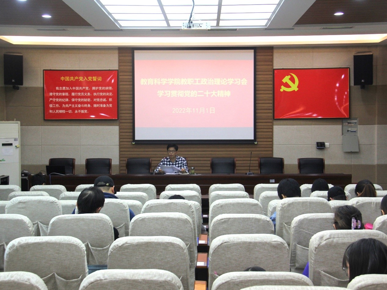 时间:2022-11-01 16:27:10 来源:教科院新闻部 作者:田园 刘至涵 阅读: 次11月1日,世界杯网址在教科楼301会议室召开教职工政治理论学习会,专题学习贯彻党的二十大精神。学院领导班子成员及全体教职工参加此次会议。