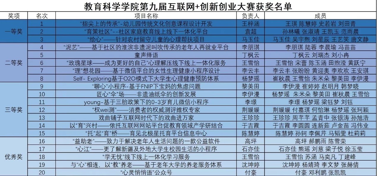 本次比赛分为主赛道和青年筑梦红色之旅赛道。经过评委初赛评审后,最终有20个项目入围决赛。参赛项目主题涵盖了心理健康、学前教育、非物质文化遗产等内容。比赛中,各项目负责人按照抽签顺序依次为大家展示团队的成果,各参赛团队就项目背景、项目概述、技术优劣、市场评估、风险分析等多方面进行了项目展示,并详细阐述了团队的创新思维与创业理念。经过激烈角逐,最终评选出一等奖3名、二等奖5名、三等奖7名,优秀奖5名,具体名单如下: