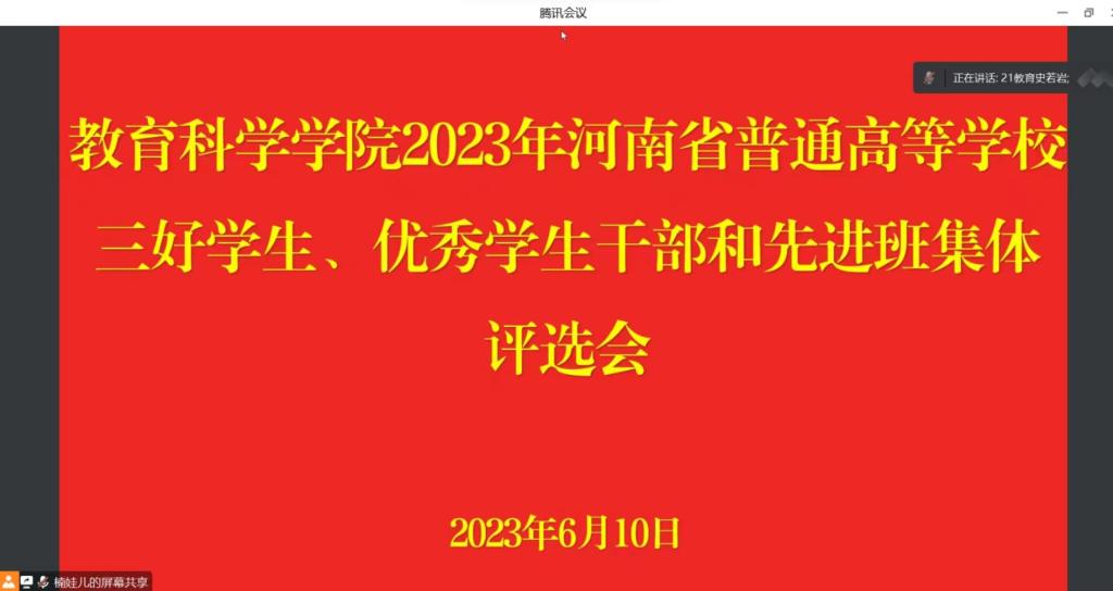 时间:2023-06-10 20:30:43 来源:教科院新闻宣传中心 作者:刘至涵 郭鑫瑶 阅读: 次6月10日,世界杯网址于线上召开2023年河南省普通高等学校三好员工、优秀员工干部和先进班集体评选会。公司党委副书记董银银,分团委书记牛洁楠,专职辅导员田园、杨艺卓、提尼格尔出席此次会议。会议由牛洁楠主持。