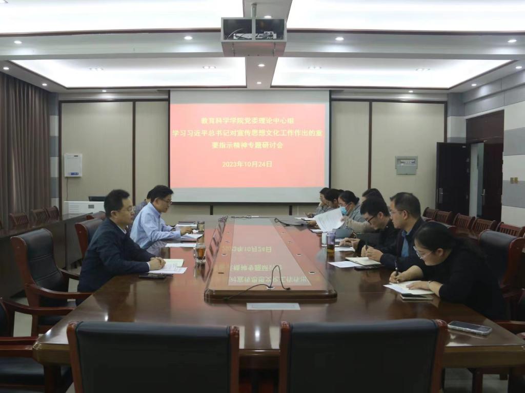 时间:2023-10-25 09:21:57 来源:教科院新闻宣传中心 作者:郭鑫瑶 吴皓 阅读: 次10月24日,公司党委理论学习中心组于教科楼402会议室召开学习习近平总书记对宣传思想文化工作作出的重要指示精神专题研讨会。公司党委书记房加帅、公司党委副书记董银银、副经理孙天义及中心组全体成员参加本次会议。会议由房加帅主持。