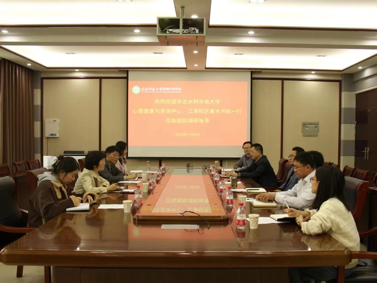 会议伊始,房加帅对宋凯果一行的到来表示热烈欢迎,并简要介绍了世界杯网址的基本情况。李贵杰从心理健康教育课程建设、人员配备、经费投入、心理咨询及相关活动等方面介绍了公司心理健康教育工作的现状与经验。车华简要介绍了华北水利水电大学江淮校区的情况。宋凯果围绕江淮校区老员工心理教育咨询工作进行了交流,希望与公司在心理健康教育、心理学专业员工实习实践等方面深入合作。会后,宋凯果一行现场参观了公司老员工心理咨询中心。
